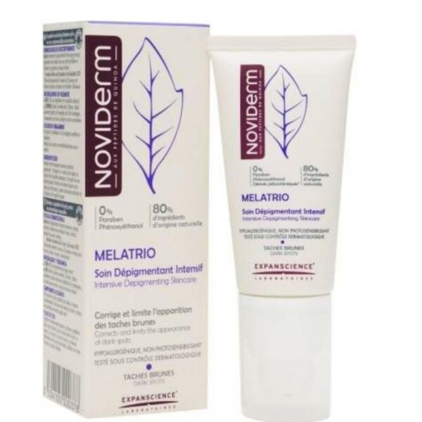 Le soin dépigmentant intensif Noviderm Melatrio est spécialement conçu pour estomper les taches brunes existantes et limiter l’apparition de nouvelles taches.
