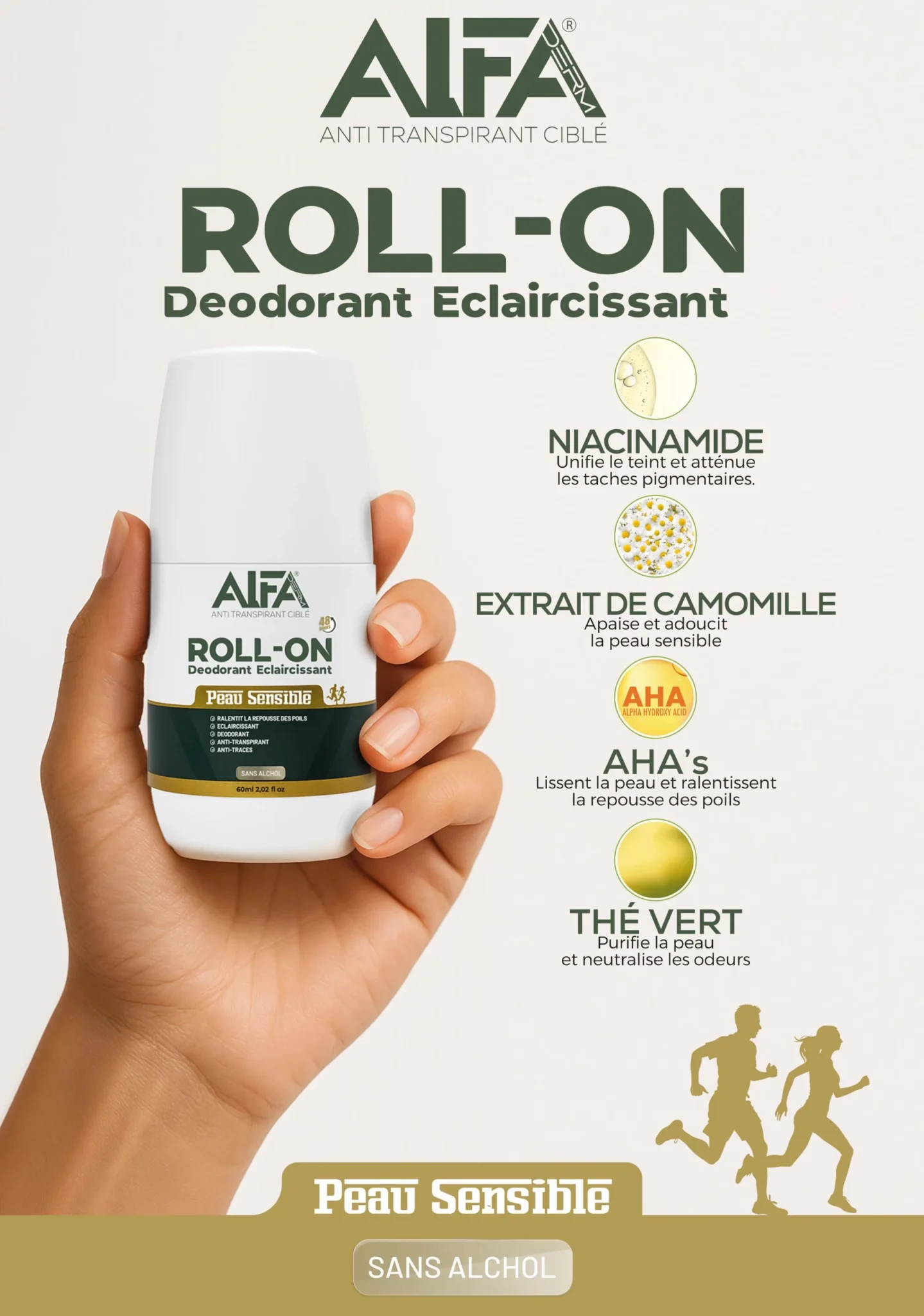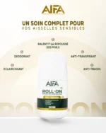 Déodorant roll-on éclaircissant Anti-transpirant 48h, conçu pour les peaux sensibles. Il éclaircit les aisselles, ralentit la repousse des poils, évite les traces sur les vêtements et respecte la peau.