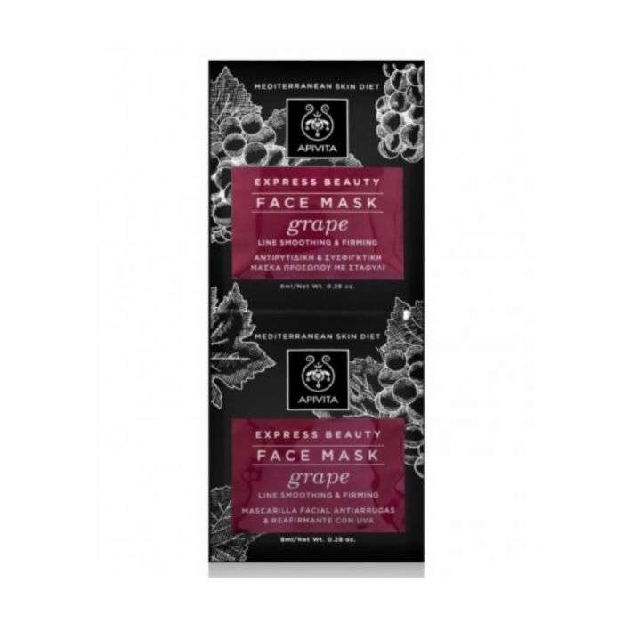 Apivita Express Beauty Grape, 2 x 8 ml, Masques crèmes pour Femme, Le masque visage Apivita Express Beauty Grape chouchoute et prend soin de votre peau.