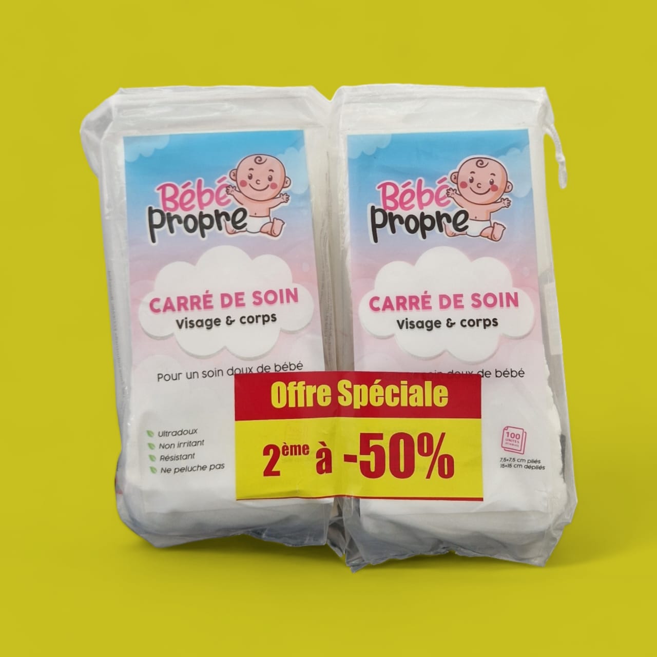 BEBE PROPRE CARRE DE SOIN 100 UNITES