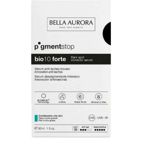 Sérum éclat anti-tâche brunes peau mixte-grasse de la marque BELLA AURORA est idéal pour les tâches brunes, les tâches solaires, les tâches séniles et les marques de la peau. Ce produit de soin est efficace grâce à sa combinaison de 4 actifs employant la technologie dépigmentante exclusive B-CORE 221.