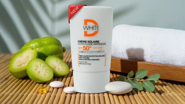 Découvrez D-WHITE Crème Solaire Matifiante Ultra Fluide SPF50+, votre soin visage indispensable contre les rayons nocifs du soleil.