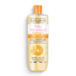 Formulée à 96% d’Ingrédients d’Origine Naturelle, Végan et enrichie en Vitamine C et en Extrait d’Orange, cette eau micellaire démaquille et nettoie la peau grâce à des principes actifs nettoyants doux.