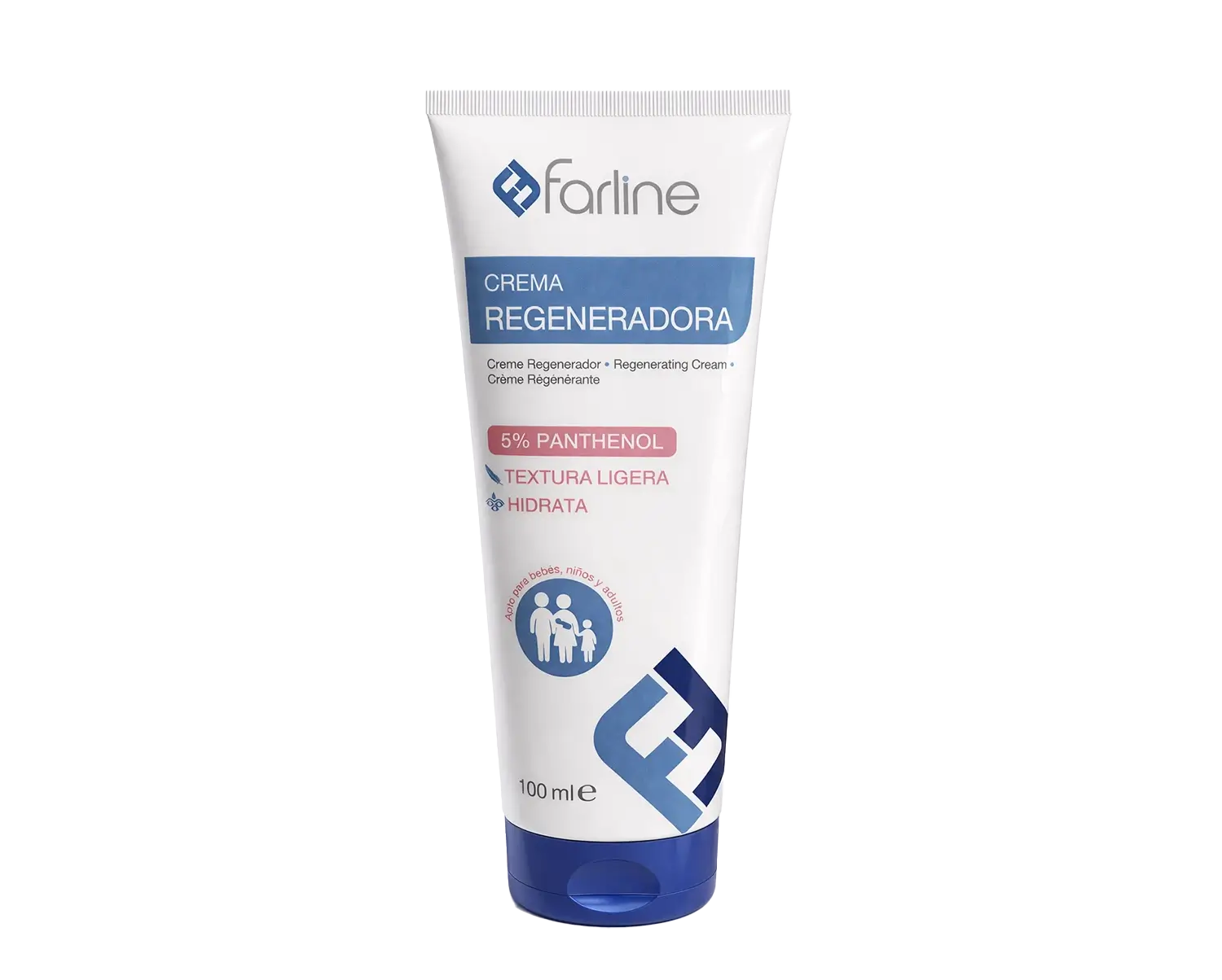 La Crème Régénératrice Farline au Panthénol 5% est un soin hydratant et réparateur conçu pour apaiser et protéger la peau. Sa formule légère aide à réparer la barrière cutanée, hydrater intensément et calmer les irritations.