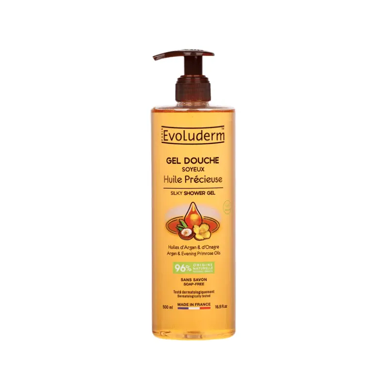 Le Gel Douche Soyeux Huile Précieuse est un soin lavant formulé à 96 % d’ingrédients d’origine naturelle, végan, sans savon et testé dermatologiquement.