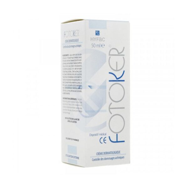 La crème dermatologique Fotoker est à la fois un écran solaire 50+ et un réparateur d’ADN endommagé par l’exposition au soleil. Il peut s’utiliser sur les kératoses actiniques.