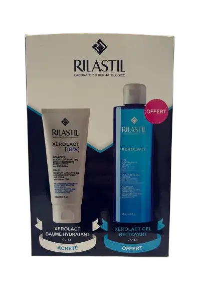 Le Rilastil Xerolact Pack réunit deux soins essentiels conçus pour les peaux sèches, très sèches, irritées ou sujettes à la dermatite atopique.