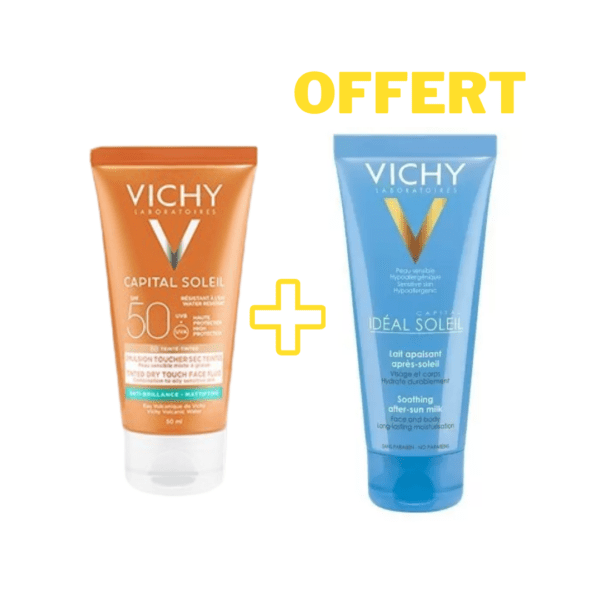 VICHY CAPITAL SOLEIL BB CREME ANTI-BRILLANCE TEINTEE TOUCHER SEC 50 ML+LAIT APRÉS SOLEIL 100ML OFFERT